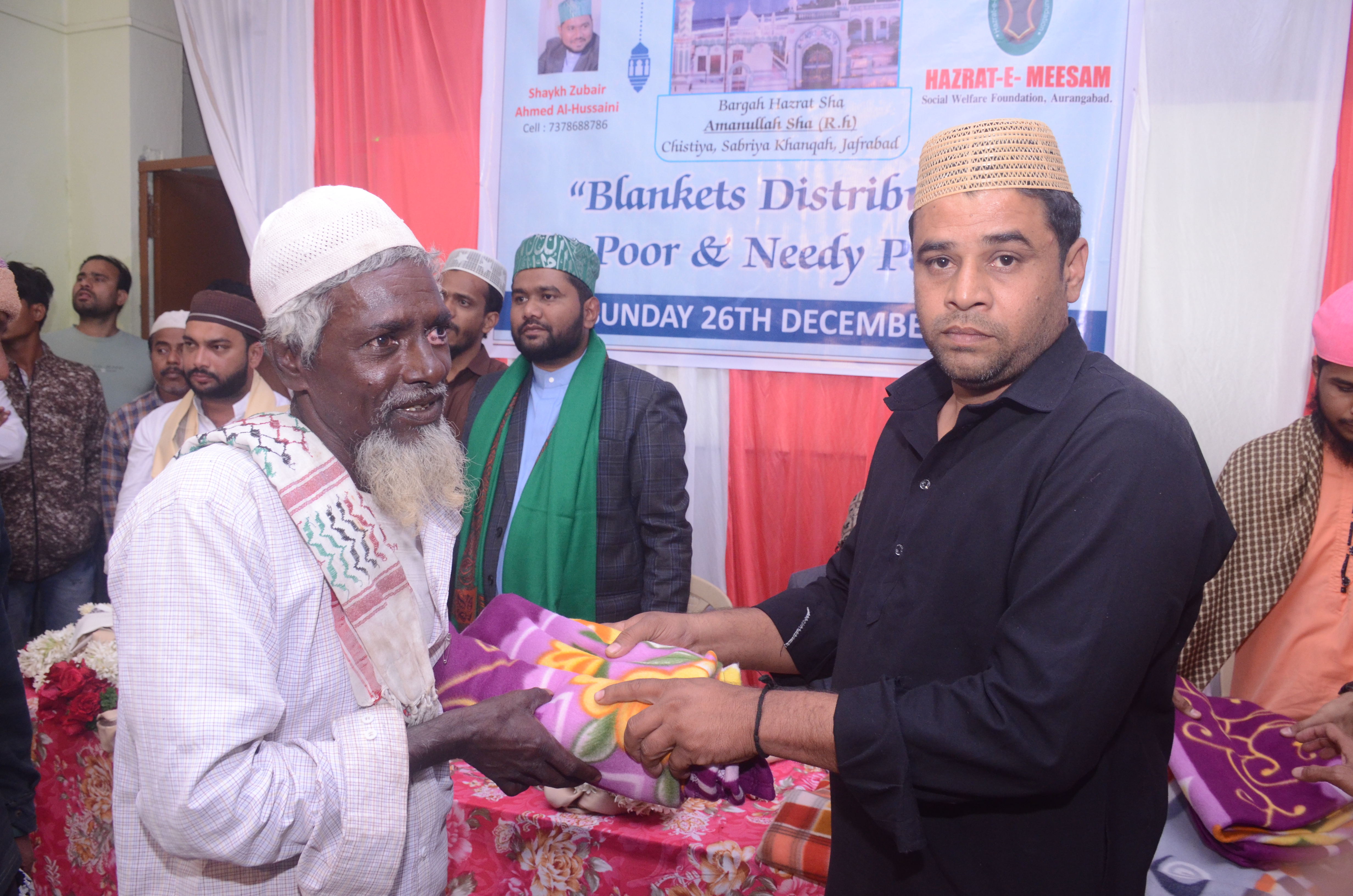 MEESAM FOUNDATION extends warmth and compassion with a blanket distribution initiative at the revered Dargah Sha Amanullah Sha Sabri Chisti (r.h) in Jafrabad. Amidst the serene ambiance of the dargah, volunteers of the foundation spread the message of care and empathy, honoring the legacy of the revered saint. Blankets, symbols of comfort and solace, are distributed to the needy, echoing the spirit of generosity and unity ingrained in the teachings of the Chisti order. Each blanket becomes a token of hope, shielding against the cold of winter while embodying the warmth of human solidarity and kindness. As the blankets are handed out, smiles blossom on the faces of the recipients, fostering a sense of community and goodwill within the sacred precincts. The event serves not only as a practical aid but also as a spiritual reminder of the importance of selfless service and charity in the pursuit of inner peace and harmony. Through such noble endeavors, MEESAM FOUNDATION continues to illuminate lives and uplift souls, echoing the timeless principles of love, compassion, and service exemplified by the Sufi tradition.